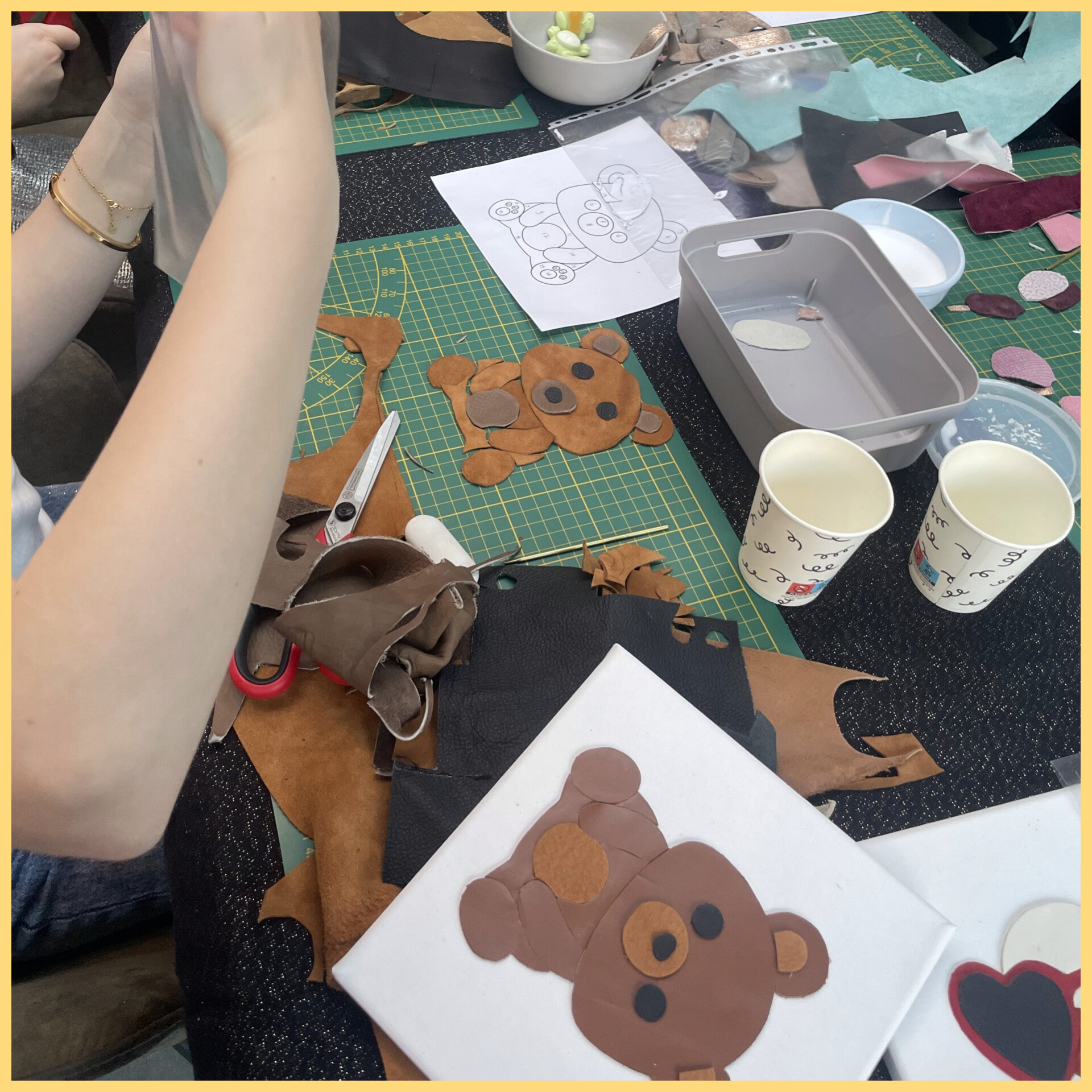 Tijdens de workshop zullen we beginnen met een kopje koffie of thee en zal ik even een korte uitleg geven van wat we gaan doen. Hierna zullen we beginnen met de foto te gaan overtrekken, om zo de patronen te maken voor het schilderij. Als de patroontjes klaar zijn ga je het leer uitzoeken wat je wil gaan gebruiken, dit ga je dan uitknippen. De laatste stap is het schilderij gaan samenstellen en plakken.