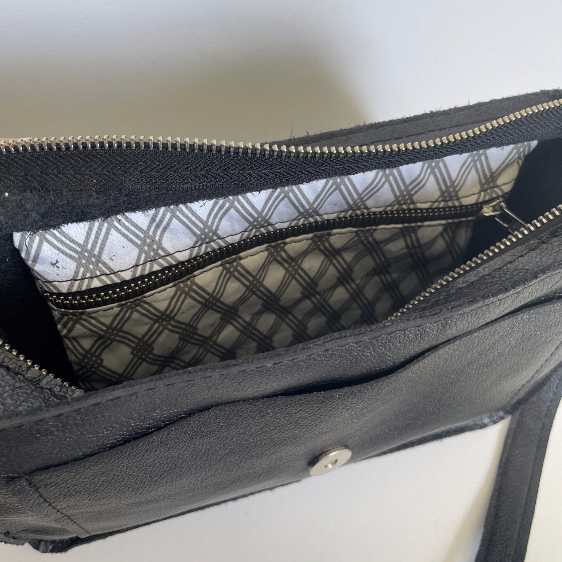 De tas heeft een vak op de voorkant en aan de binnenkant nog een ritsvakje voor kleine spulletjes die je veilig wil opbergen. De tas is uitgevoerd met 2 sluitingen, magneetslot en rits, en is dus goed beveiligd.